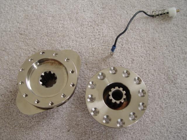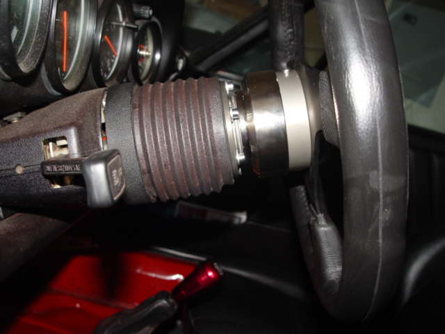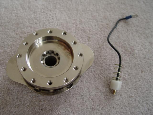 | Steering Wheel Quick Release Type 1-A All metal construction extend 1 inch has 10 splines, has 2 sets of bolt pattern upper and lower, for both Momo and Sparco. Horn is usable. $100. |